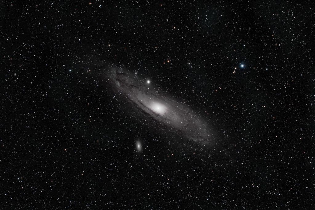 Ik heb eerder opnames gemaakt van M31. Echter is het object voor mijn hoofdkijker de WO 132FLT te groot om goed in beeld te krijgen. Je ziet dan maar een deel van de nevel. Daarom met de ASKAR gedaan om een volledige M31 in het beeldveld te zien. De opnames zijn gemaakt op 24 december 2025.